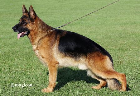准德牧尾巴下部要长有浓密的毛,尾椎至少延伸到飞节。