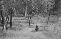 尾:尾应有丰满的毛,往外弯曲似刀状下垂。休息中,保持舒缓的弧型下垂,但兴奋时、运动时,就显著变成似弓状稍微往上抬起。但不得越过水平线往上扬起,尾巴不宜伸直又不可往背上卷。以人工的方法剪短尾巴或改变形状是规则不许可的。